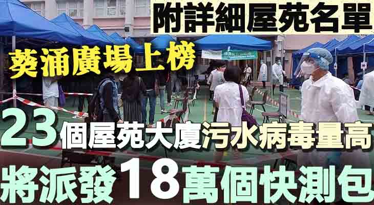 【附詳細屋苑名單 葵涌廣場上榜】23個屋苑大廈污水病毒量高:將派發18萬個快測包