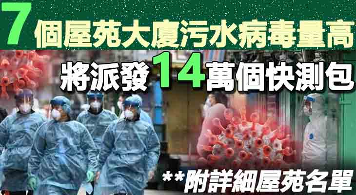 因應以下各區的污水檢測結果呈陽性和病毒量相對較高,房屋署及當區的民政事務處將會陸續向以下地點的居民、在地工作清潔員工和物業管理員工派發合共約十四萬個快速抗原測試包,供他們自行檢測,以輔助識別感染者: