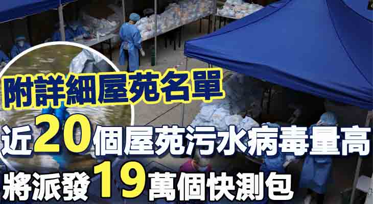 因應以下各區的污水檢測結果呈陽性和病毒量相對較高,房屋署及當區的民政事務處將會陸續向以下地點的居民、在地工作清潔員工和物業管理員工派發合共約十九萬個快速抗原測試包,供他們自行檢測,以輔助識別感染者: