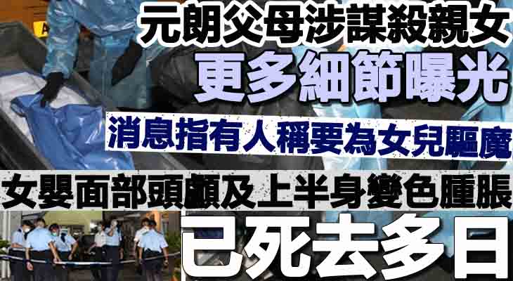 最新消息指被捕父親有接受精神病治療的紀錄,而被捕母親近日與親友交談時對答有異,警方正調查女嬰是由父親或母親施襲。據了解,有人聲稱因女嬰「鬼上身」,要為女兒驅魔。