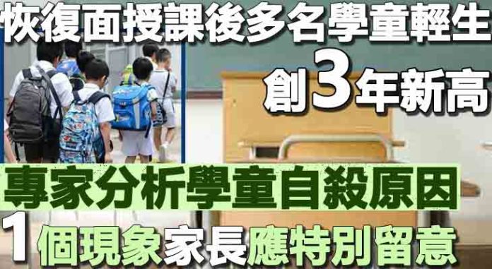 隨著疫情逐漸緩和,很多學校都陸續恢復面授課堂,惟學生情緒問題引起社會關注。港大防止自殺研究中心上月錄得7宗學童自殺個案,創近3年來新高,再度引起公眾關注。