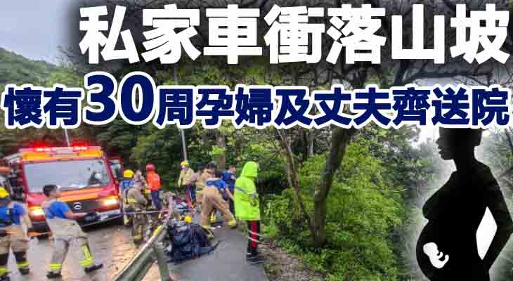 拯救約半小後,車中夫婦終於被救出,二人沒有受傷。據了解,懷有30周的邱婦經初步檢查,胎兒平安,由救護車送院檢查。黃向警方聲稱天雨路滑跣胎引致車禍。