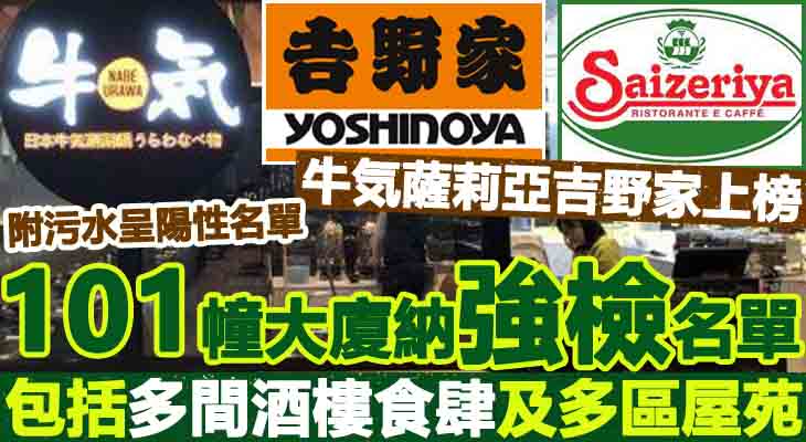 【附污水呈陽性名單】101幢大廈納強檢名單 包括多間酒樓食肆及多區屋苑 牛気薩莉亞吉野家上榜