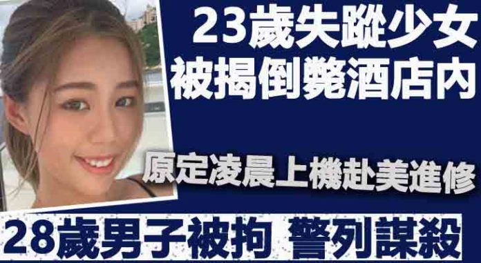 最新消息指,一名28歲男子勞X銘與律師前往黃大仙警署交出一張酒店鎖匙咭,聲稱與23歲女瑜伽導師周慧賢失蹤的案件有關。警方已將案件列作謀殺,交由油尖警區重案組跟進。