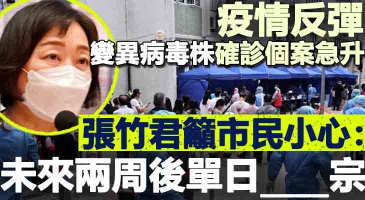 張竹君表示目前疫情趨勢正在上升,一兩個星期每日個案數字「翻一番」,目前趨勢下未來個案數字可能很高,未來兩周後單日個案或達6000宗,因此呼籲市民小心,目前不會深究現時這一波疫情是屬第幾波。