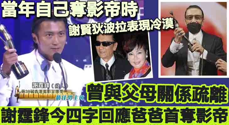 後來,打電話給爸爸,才發現爸爸正在打麻雀,沒有收看頒獎禮。連媽媽狄波拉都表示謝賢根本不知道兒子獲獎,父母均對兒子首獲影帝表現出乎意料地冷漠,難怪謝霆鋒坦言跟父母一起欠安全感,關係的確比較疏離。