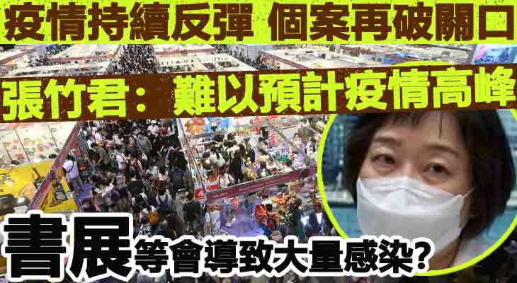 被問到書展等大型活動會否導致大量感染,張竹君指參加書展或其他大型活動的人士需要帶口罩,希望市民不要鬆懈,遵守防疫措施,保持適當防疫距離。