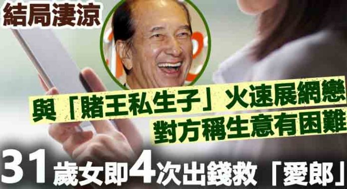 一名31歲女子透過交友程式認識自稱為「賭王私生子」的男子,發展成為網上情人,沒想到卻是一場網戀騙局,並損失56萬元。