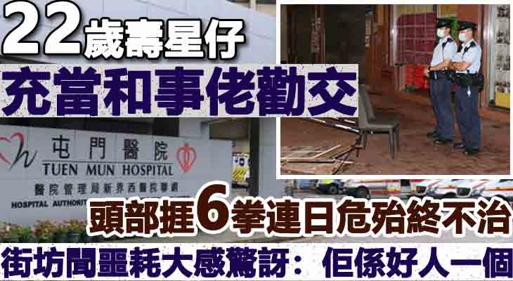 警方早前接報,於上周六(6日)凌晨時分於屯門區發生嚴重傷人案件,期間懷疑有人因爭執而發生打鬥,當中3名傷者受傷送院,其中1名22歲傷者延至昨日下午傷重不治身亡。警方經調查後已於上周六拘捕兩名疑兇。