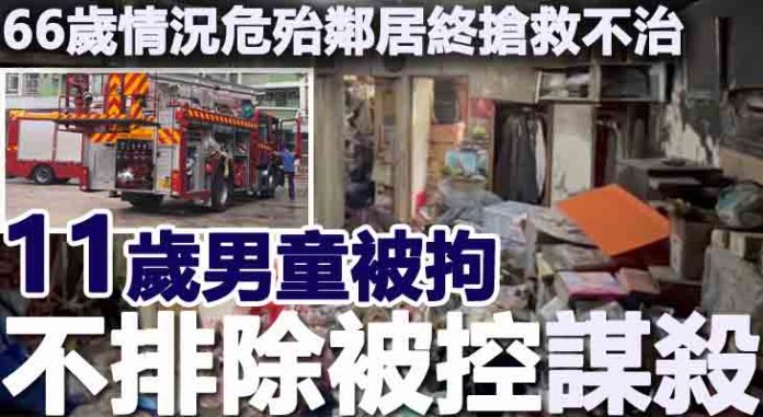案中一名11歲男童疑貪玩在走廊以燃燒中的香燭,及後點燃66歲鄰居門外掛着的布簾肇禍。男童被警方以涉嫌縱火拘捕,至今早仍被扣留。案件交由黃大仙警區重案組第二隊跟進。