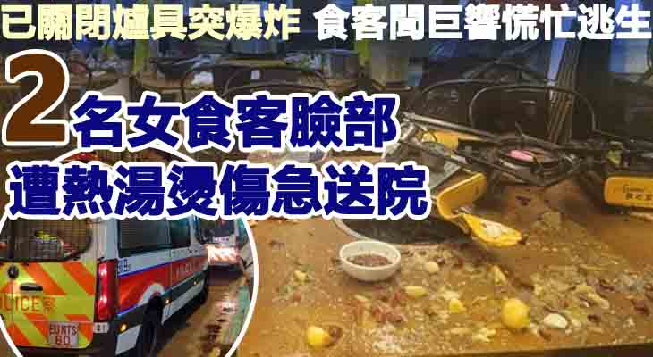 意外發生在荃灣二陂坊地下的一間食肆。其中2名女事主的臉部遭滾熱的湯料燙傷及遭玻璃碎片割傷濺血,同行友人慌忙報警求助,而其他食客乍聞巨響,慌忙逃生。