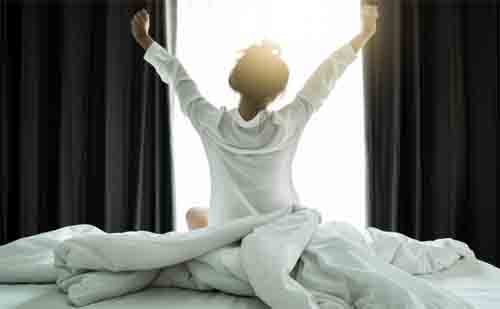 建議:可用透光性好的窗簾,促使自己自然醒來。或者選擇舒緩的、音量慢慢增大的音樂作為鬧鈴。