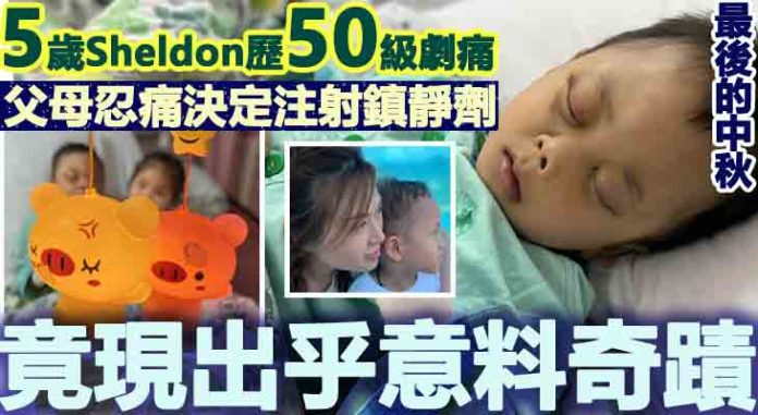 中秋佳節,Sheldon媽媽於社交網上發文。她以《團圓》為題發文講述兒子的近況,他指3天前她和丈夫過了一個刻骨銘心的晚上,「我也試過分娩兩次,如果生育過程是十級痛,我相信Sheldon當晚經歷了50級的劇痛。即使使用了高劑量的嗎啡、鎮靜劑和K仔也沒有效。他哀求我們救他,於是我們在沒有心理準備下,『忍痛』決定了讓他注射令他長期昏睡的鎮靜劑」。
