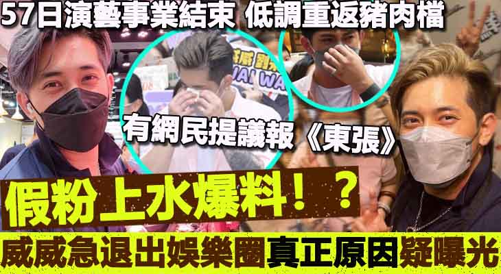 有傳媒更聯絡過威威的經理人及助手查詢,不過竟已讀不回,暫時沒有回覆,看來已經全面撤出娛樂圈。日前有傳媒肉檔發現威威,以往有問必答的他被指全程黑面拒受訪,一直低頭斬豬肉,全程未有望向記者,恍惚正式告別僅57日的演藝事業,甘願回歸平淡生活。