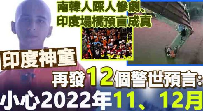 【南韓人踩人慘劇、印度塌橋預言成真】印度神童再發12個警世預言:小心2022年11、12月