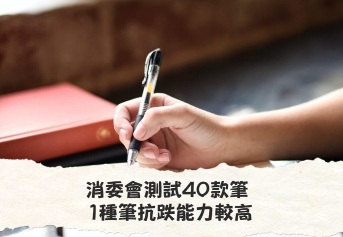 很多學生都會不慎跌筆,消委會亦測試了各樣本的抗跌效能,試驗於離地面1米位置,將已經打開筆蓋或按出筆咀的試驗樣本,以筆咀垂直向下讓其自然跌落地面1次,隨後檢查樣本能否劃出10厘米流暢的直線。如果劃出來的直線沒有斷斷續續的問題,便會於離地1.2米再進行跌落和劃線試驗,如此類推,直至最高的跌落高度為距離地面1.8米。結果顯示,半數型號的抗跌效能理想,即使經過從上述不同高度進行跌落試驗後,仍可以於不同試驗階段劃出流暢的線條。整體而言,原子筆型號的抗跌效能普遍較理想,啫喱筆型號的表現則較為參差,有4款型號即使只是從1米跌落,隨後劃出的線條已呈斷斷續續。