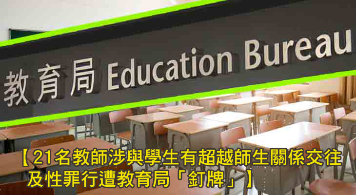 教育局公布去年有21名教師被取消教師註冊,遠高於前2年的各7人。教育局指被釘牌教師主要涉及「干犯與性相關、虐兒或盜竊等的罪行、與學生有超越師生關係的交往」等。