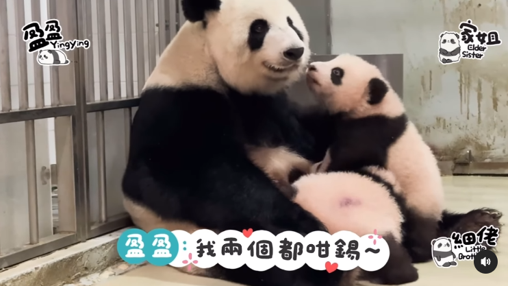 在海洋公園最新發佈影片中,盈盈首次成功同時照顧兩對可愛的熊貓孖寶。儘管面對這麼多小生命,盈盈的表情依然淡定,讓人驚嘆她的冷靜與專業。