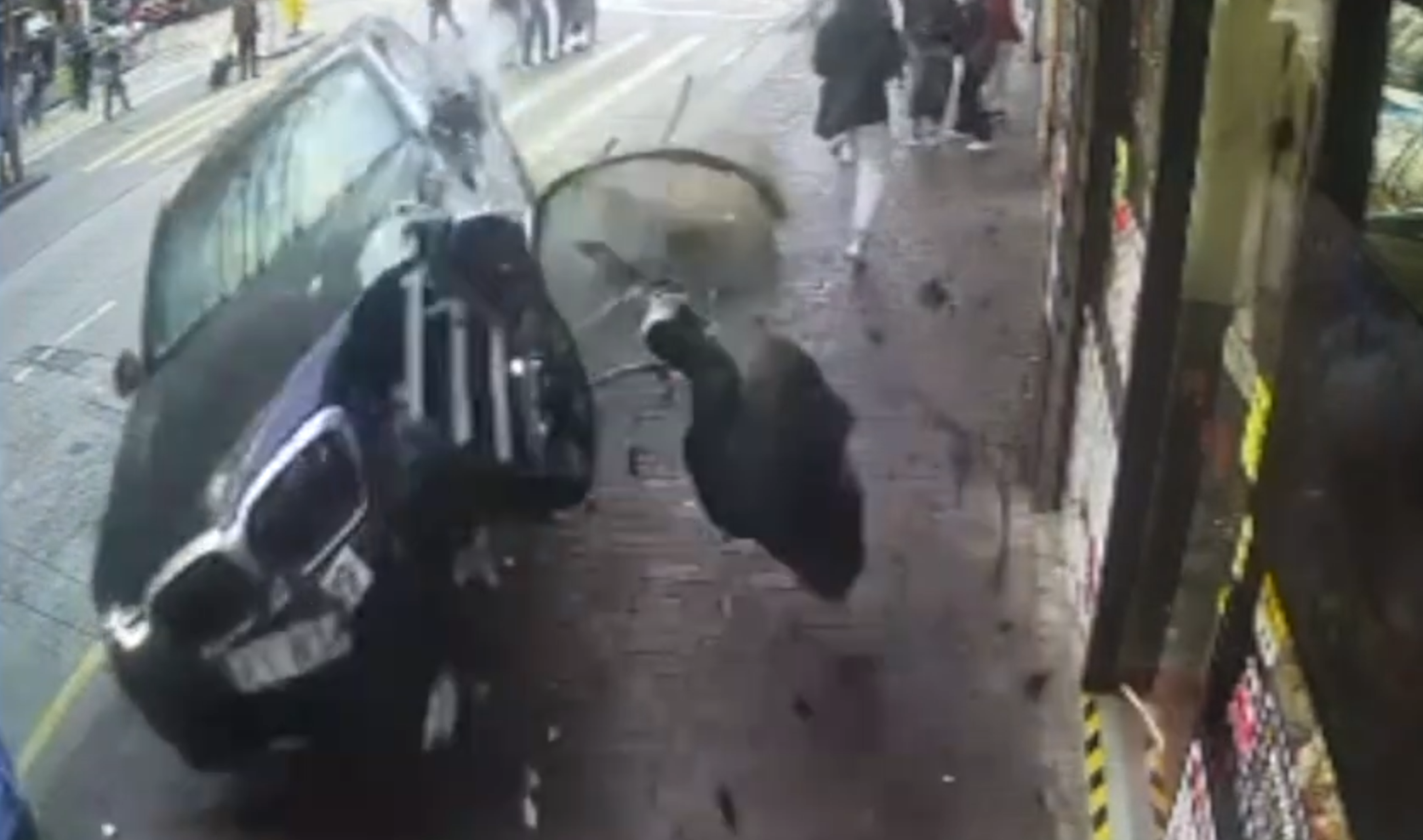 事發當時,現場的閉路電視拍下了事故的經過。片段中可見,行人路上人來人往,當時正值行人綠燈,一輛私家車以高速駛來,首先擦撞了一名剛走過馬路的女途人,隨後衝破鐵欄,撞飛了一名背對私家車的男子,該男子跌倒在附近的食肆門口。