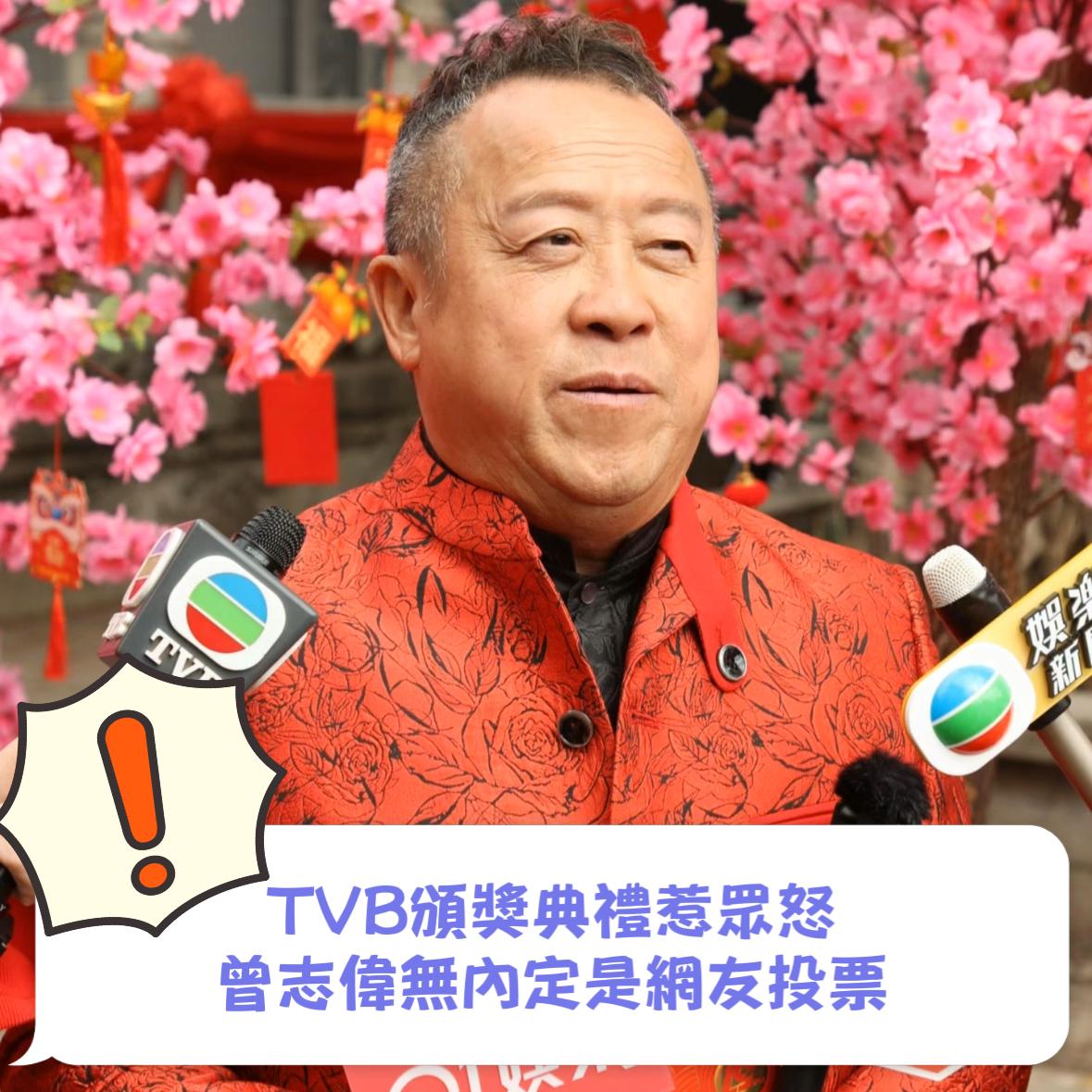 曾志偉續說:「好像林景程那樣,當聽到他獲獎的時候,好多人都喊了出來。就好像以前舊規矩公司都不會給我,又或者我們年紀大,都是由年輕人拿。但我想講今年是好公正。說’我續約,你是不是給個視帝我’又或者給個視後和男配角那樣,變了現在知道不用講條件,因為每一個人都憑實力,希望這一樣東西能夠令我們每個藝人好像金像獎那樣,每個拿到,都覺得實至名歸。你都沒用,因為我們的評審制度已經決定觀眾和同事裡面。 那麼不如花點心思和同事相處好一點,又或者和觀眾或影迷,大家拉好關係等他們投自己多一點票那樣豈不是更好。