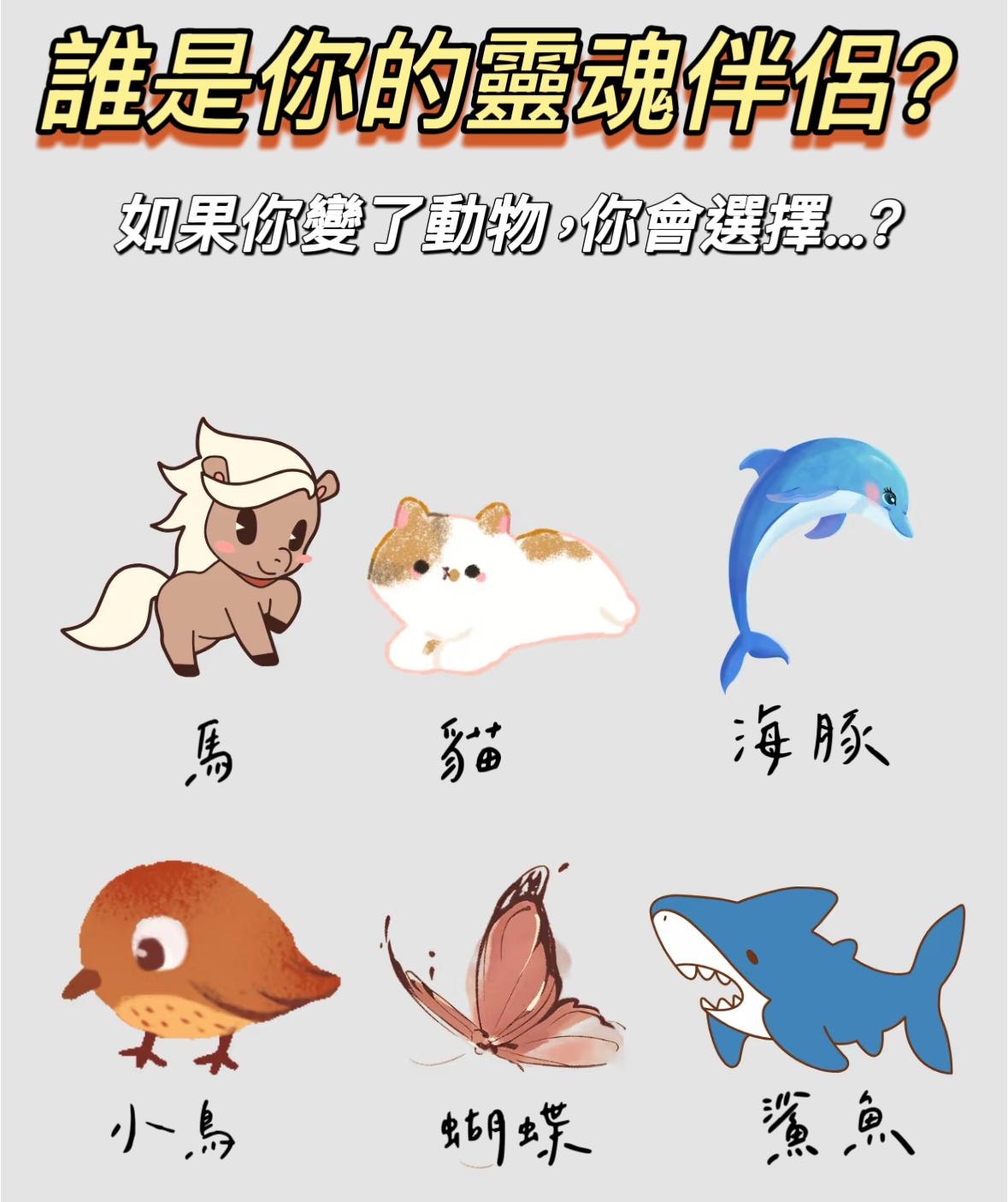 蝴蝶:比較細心,對周圍的人很體貼,很喜歡照顧身邊的人,給予溫暖,不管是做事或對待感情,都比較規矩靠譜,放心的交給你啦,你的魂伴侶是小鳥。