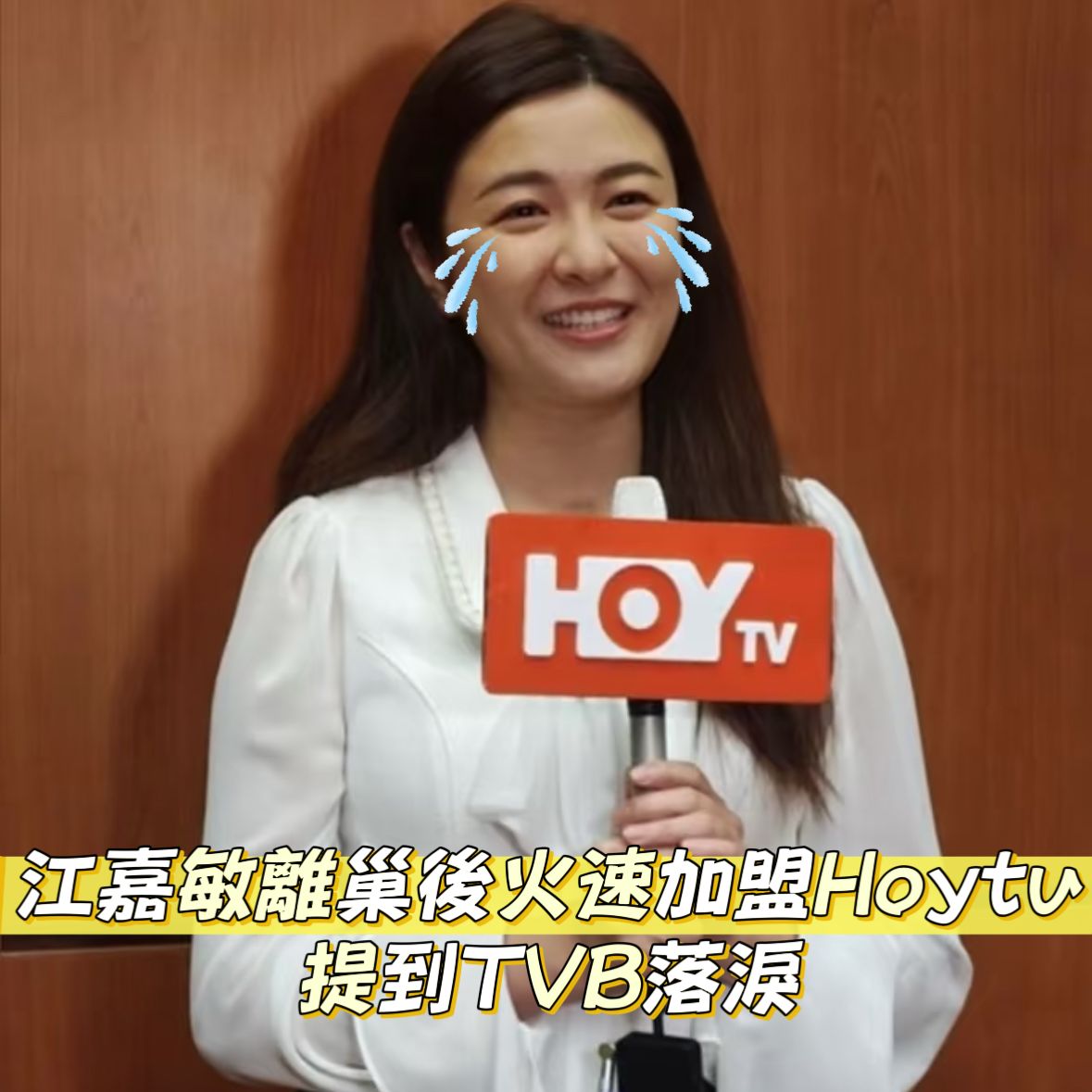 江嘉敏日前宣布離開TVB後,立即轉投HOY TV,與高層張志明以及《健康關注組》的台前幕後團隊一起到社區做善事,派發福袋給老人家。江嘉敏在接受HOY TV訪問時提到舊東家,一度落淚。
