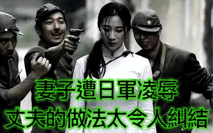 楊妻的臉都嚇白了,雙手死死扒著櫃檯,向丈夫和學徒求救。暴怒的日軍瞪著楊老闆和學徒,將另一隻手中的步槍嘩啦啦晃動威脅,楊老闆只得懇求妻子順從保命,眼睜睜看著日本兵把妻子拖入內室。很快,從裡面傳出妻子撕心裂肺的哭喊聲。