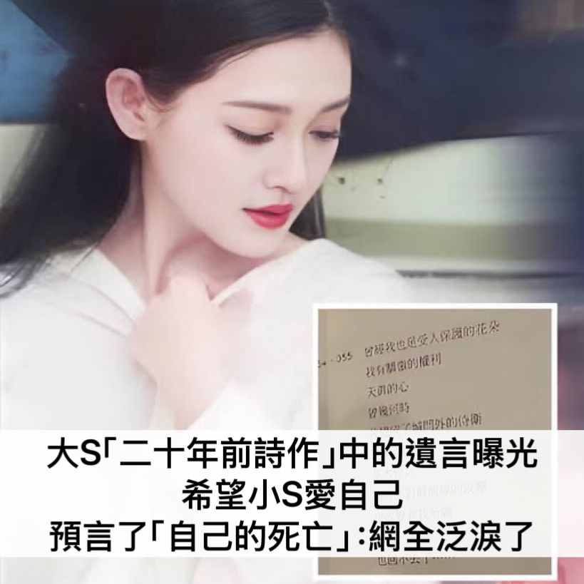 令人唏噓的是,大S還在這個詩集中有一篇名為《你要帶我去旅行?》的詩作,里面寫道:「你要帶我去旅行?那就去愛情的國度旅行!但當我到達的時候,早已年華老去;你要帶我去旅行?那就去夢想的國度旅行!但當我到達的時候,早已精疲力盡;你要帶我去旅行?那就去沒有仇恨的國度旅行!但當我到達的時候,生命已經消失殆盡…」