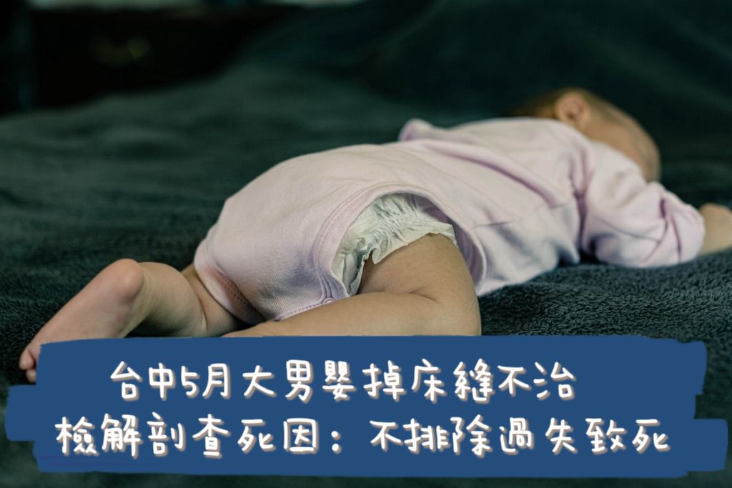 在台中市北屯區發生一起嬰兒死亡案,一名僅5個月大的男嬰疑似掉到床的夾縫中,被母親發現時已無生命跡象,經搶救仍不治。(8)日上午,台中地檢署進行解剖,全案不排除朝過失致死偵辦。