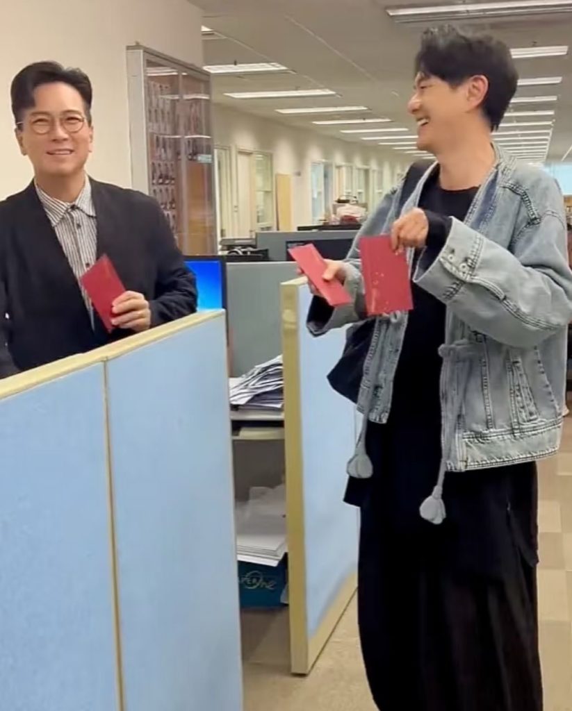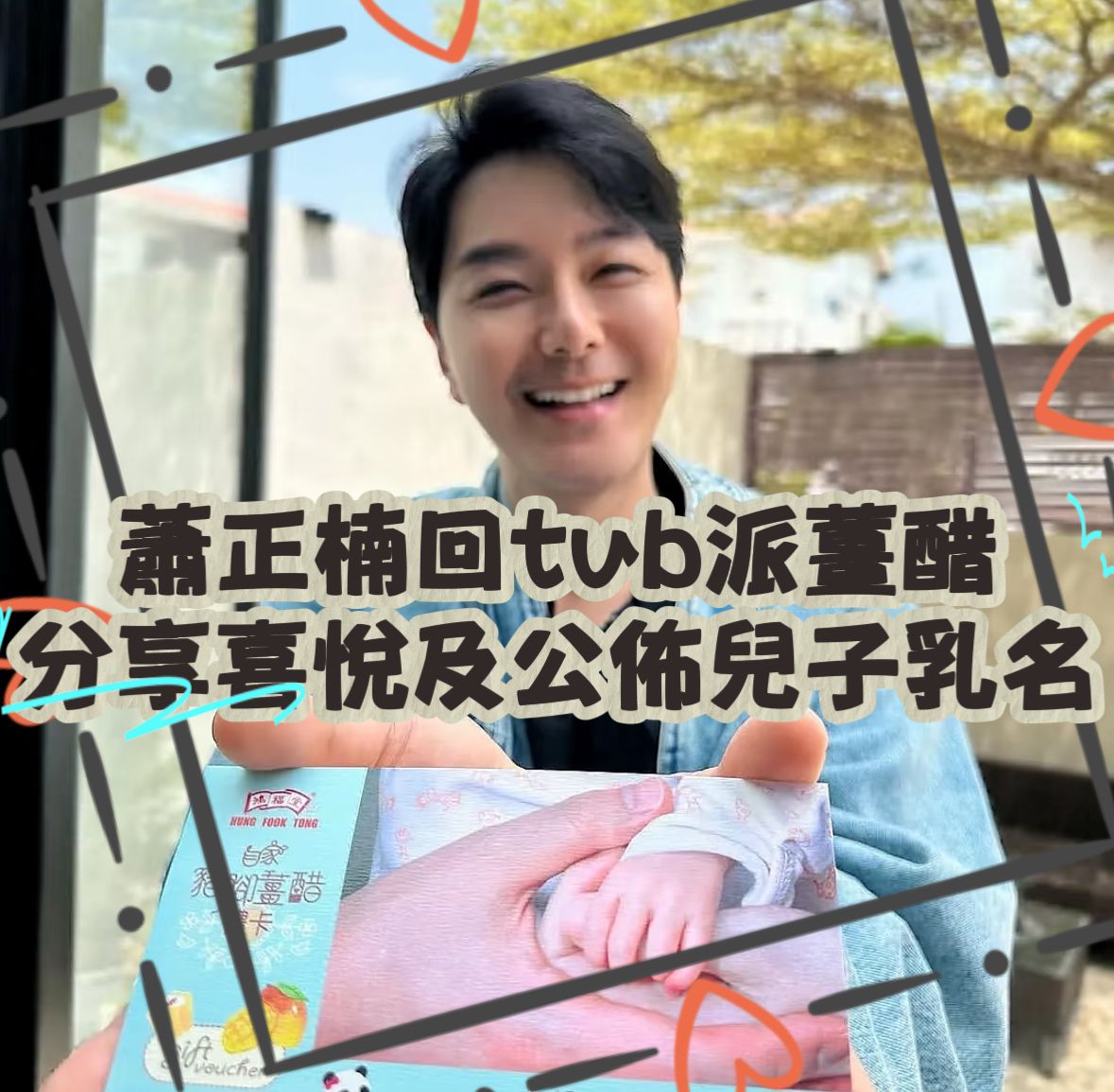 昨天他回到TVB派發薑醋分享喜悅,還在網路上放了影片片段。可以看到蕭正楠到了不同部門派發薑醋,去到服裝間的時候還恰巧遇到了阿姐汪明荃,阿姐馬上握手恭喜這位新爸爸。而蕭正楠還分享了兒子的照片,看起來很開心。