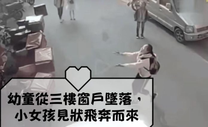 正走在路上的一名小女孩看見了,立刻向樓下飛奔過來,隨即將孩子送往醫院,所幸孩子並無大礙!