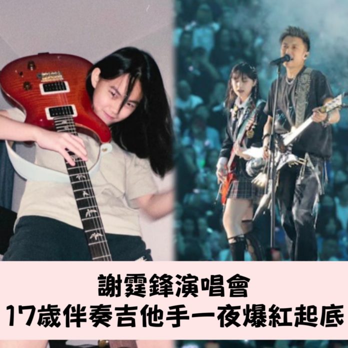 謝霆鋒演唱會除了多首經典金曲,謝霆鋒與樂隊的電吉他手們的互動也相當值得留意,有吳林峰、王雙駿、Jason Kui、恭碩良等知名音樂人助陣之餘,在一群Man到爆之中的rock友中站著一位同樣充滿rockrock的妹妹,不少觀眾都注意到誰與他不同的吉他手追問