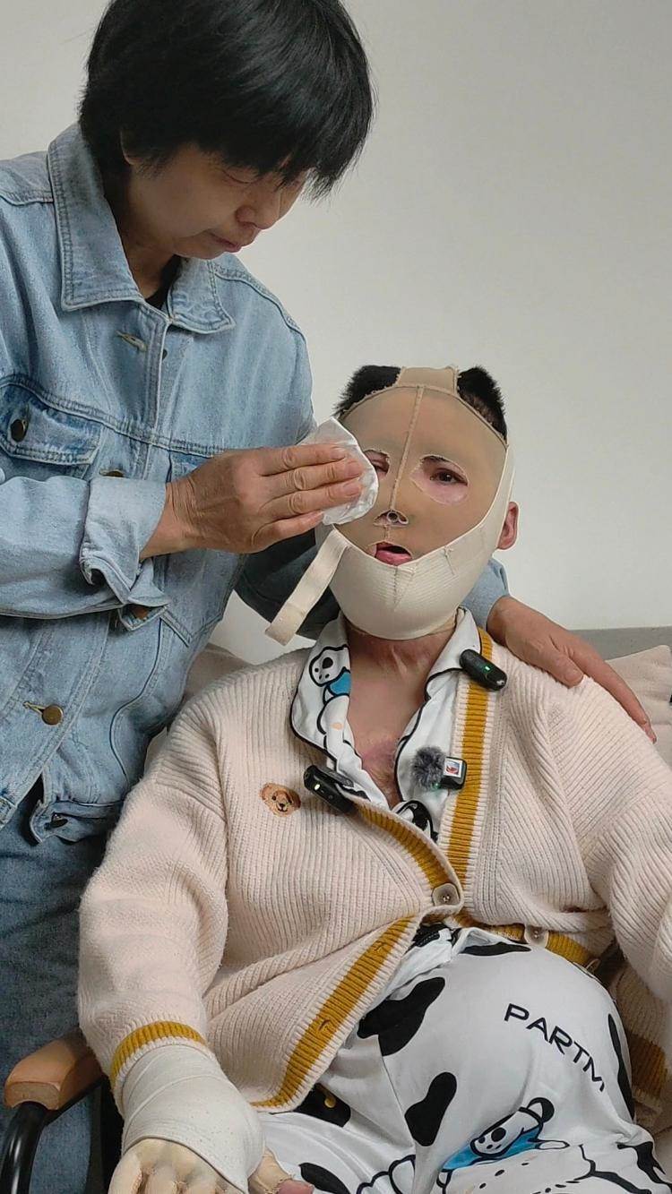 陳女士燒傷後被送入ICU病房,氣管被切開,無法說話,「我想讓他們別救我了,救回來也是重度殘障,可是我說不了話。是我的媽媽一直照顧我。她說,要是我走了她也不活了,無論我變成什麼樣,就算是成植物人,他們都要我活著。我這才慢慢有了活下去的信心。」陳女士說。之後,儘管每一次換藥都彷彿有千萬根針刺在皮膚上,躺在病床上疼得滿頭大汗,吃藥副作用導致嘔吐、拉肚子,陳女士依舊堅持治療、復健。