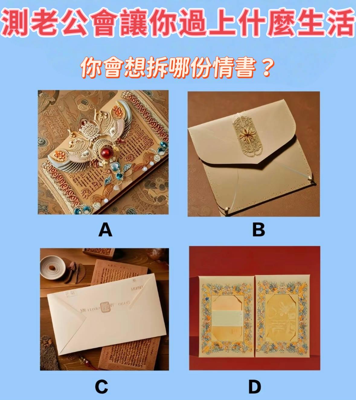你老公會讓你過著簡單幸福的生活。你是個善良單純,依賴性比較強的女孩。你只想做一個相夫教子的小女人。你家裡大部分的經濟來源是靠你老公賺來的,雖然他賺不來大錢。但是他很寵你,也很痛你,把你照顧的很好。他總是盡自己最大的努力,讓你過得幸福快樂一點。