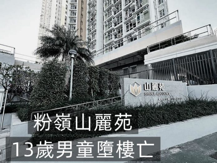 Uncategorized 粉嶺山麗苑 13歲男童墮樓亡 2025-05-15 Share on Facebook Tweet on Twitter 今日(15日)早上10時許,警方接獲粉嶺山麗苑松山閣保安員報案,指發現一名13歲男童墮樓,昏迷倒臥平台。救護員趕抵現場,經檢查後證實男童已當場不治,警方正調查事件原因。 閱讀全文
