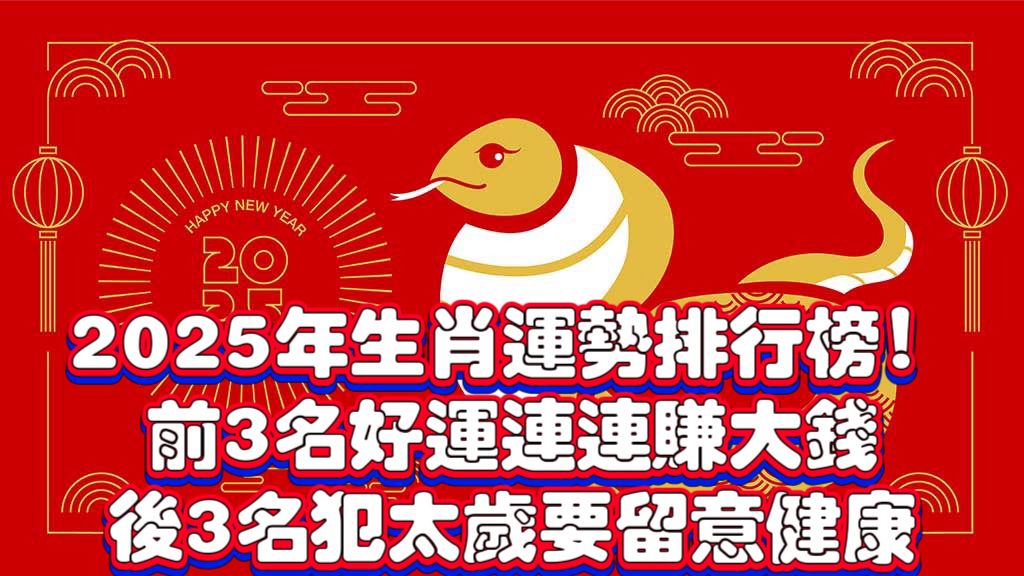 2025年犯太歲和好運的生肖,並做出運勢排名,希望能幫助大家了解犯太歲生肖該如何避險、好運生肖如何最大化利用運勢,為2025年做好準備。