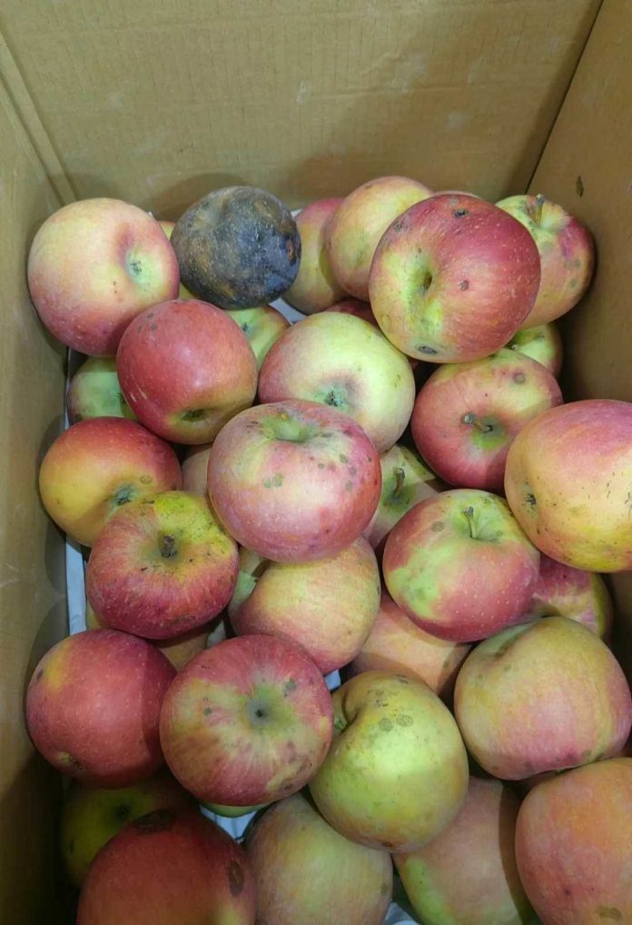 然而,當她打開箱子時,卻大失所望:蘋果表皮皺巴巴的,還帶著發黑的斑點,甚至沾著泥土,看起來極不新鮮。李女士不禁嘟囔著:「這哪能吃呀?」