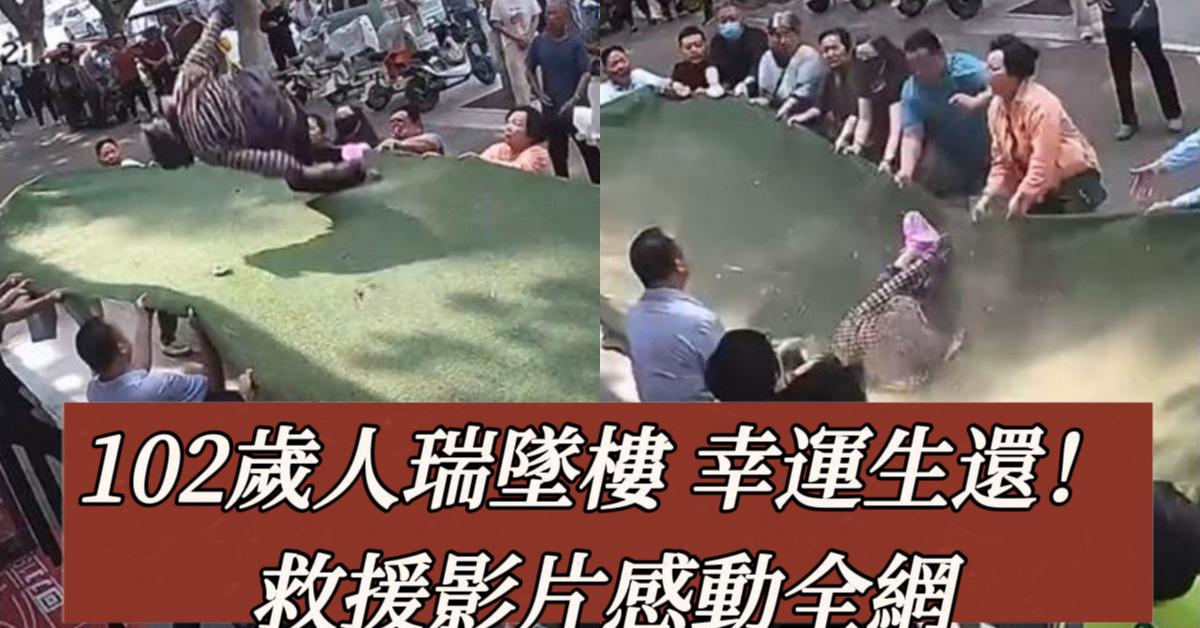 大陸河南日前發生一起驚險墜樓意外!一名高齡102歲的人瑞,誤將3樓窗戶當作房門,攀爬到一半失足墜落,身體懸掛在半空中。樓下路人及商家見狀,10幾個人合力,最後成功接住墜落的老人。所幸人瑞在送醫後僅輕微擦傷,並無大礙。
