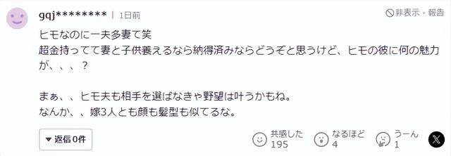 對于「軟飯男」渡部龍太的一夫多妻生活,日本網友議論紛紛:「只有我一個人覺得幾位夫人長得很像嗎?」