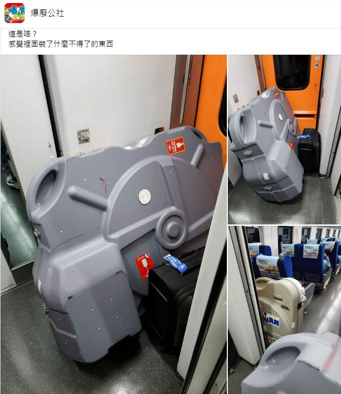 原PO在臉書社團「爆廢公社」分享了自己在搭火車時的經歷,表示看到有一名乘客攜帶了兩個巨大的塑膠箱,箱子上甚至貼著「易碎品」的標籤。