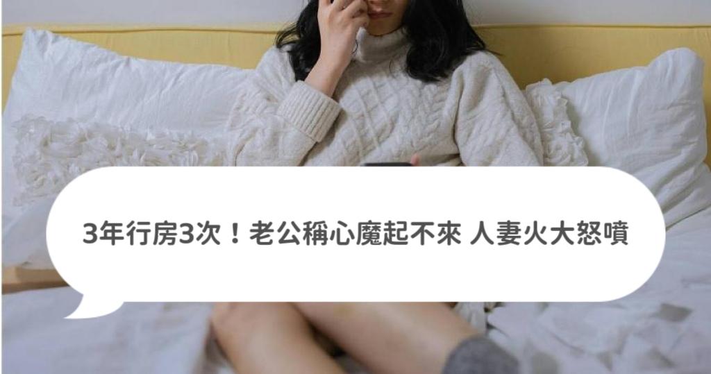 近日一位人妻表示,她跟老公3年只有3次性生活,因為意外懷孕拿過一次小孩,老公稱有心魔硬不起來,還偷玩股票欠一屁股債,而老公不想離婚硬撐在那,讓她很火大。