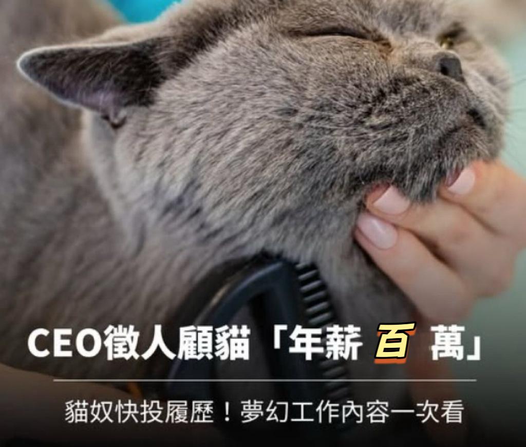 英國倫敦私人飛機公司「Aviamarket」日前登出一則超吸睛的職缺,他們要找1至2位的私人助理,全職照顧辦公室內的英國短毛貓Jerry,待遇高達年薪13.5萬英鎊