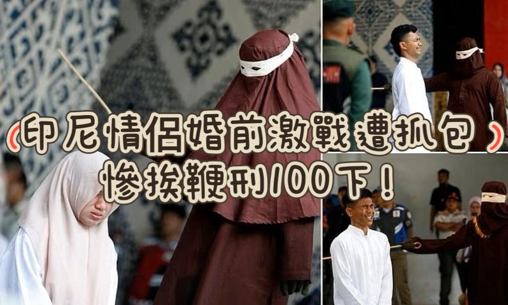 印尼一對情侶因發生婚前性行為,違反伊斯蘭戒律,遭到當眾鞭刑各100下,行刑畫面也隨之公開。