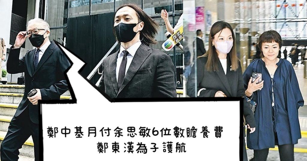 對於8000元贍養費,鄭東漢再一次指嚴重不符,並補充「月付6位數字以上」但被問到當中是否包括小朋友學費及生活費,鄭東漢則表示細節不便透露,但他強調小朋友起居飲食、司機全部都有提供,加起來不止6位數,全部均由鄭中基負責:「對佢都幾大負擔」鄭東漢又透露現在仍有機會見到孫仔孫女,而小朋友似乎亦已接受父母離婚一事。