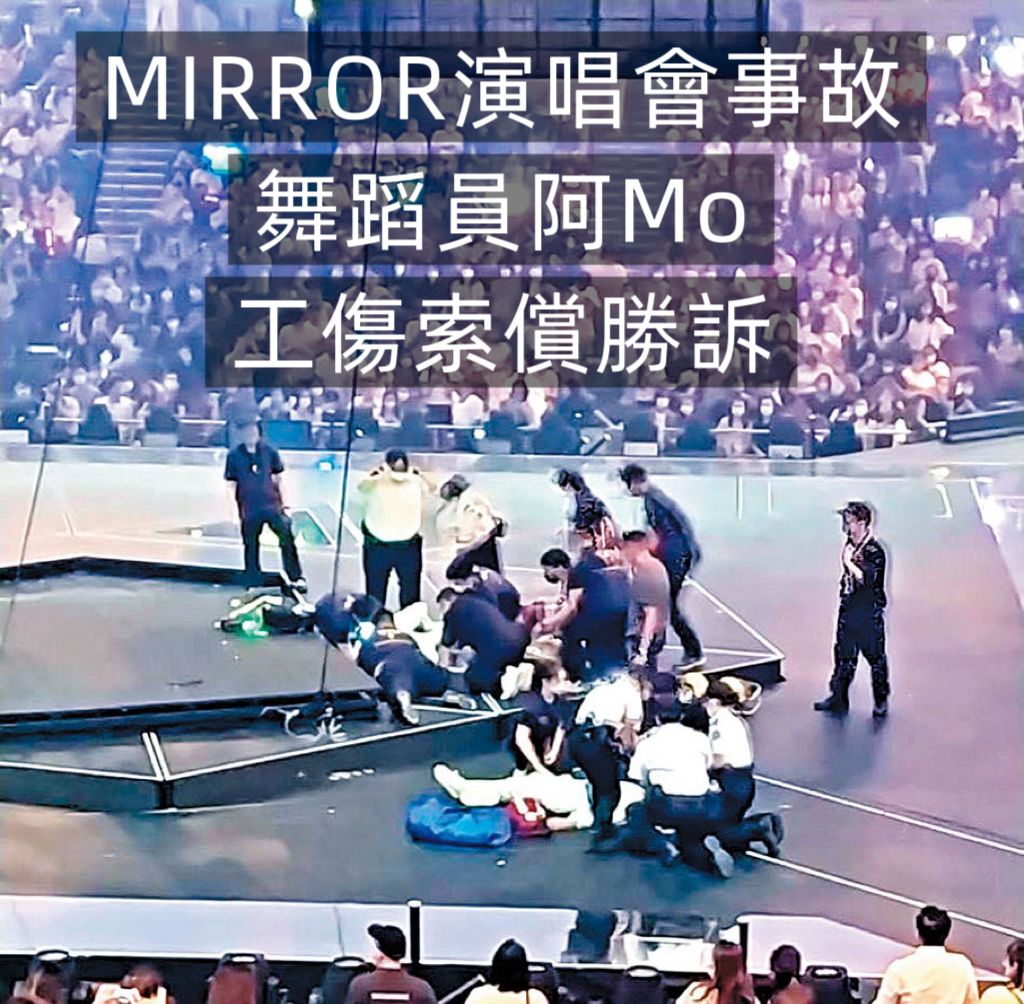 男團 MIRROR於2022年7月在紅磡體育館舉行演唱會期間,發生大型屏幕墮下事故,導致兩名舞蹈員受傷,其中一人李啟言(阿Mo)脊椎重創、四肢癱瘓。李早前入稟區域法院向其僱主「舞館有限公司」提出工傷索償,案件今日(4日)於區院處理,惟舞館未有派員出庭,最終法庭裁定李啟言勝訴。