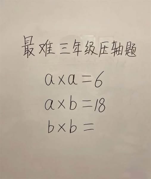 這道題目出現在知名律師林智群的臉書粉專上,他稱其為「最難的三年級壓軸題」。題目為:「axa=6,axb=18,bxb=?」。看似簡單的數學題卻暗藏玄機,林律師還笑稱「這個應該用心算5秒就可以解出來了吧!」引來一票網友挑戰自己的數學實力。