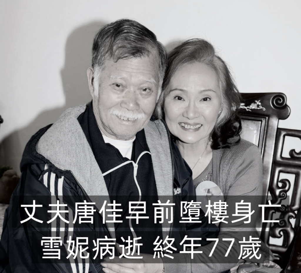 丈夫唐佳早前墮樓身亡 雪妮病逝 終年77歲