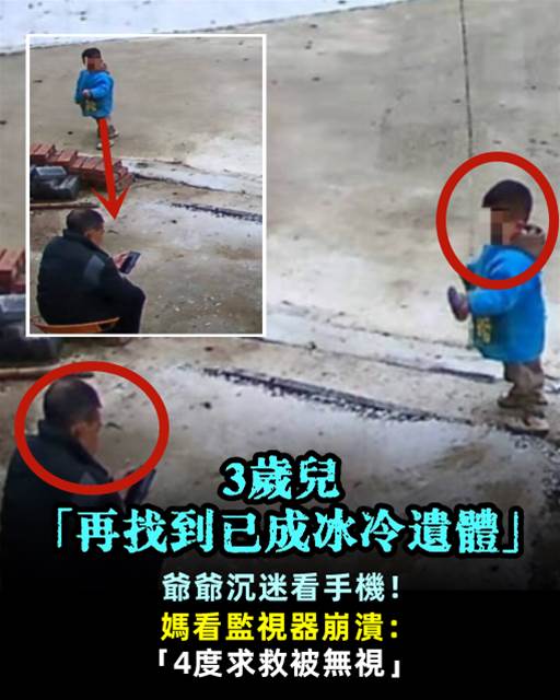 從曝光的監視器畫面中可以看到,原本爺爺跟3歲孫在自家門口玩,由爺爺親自照看孩子;然而突然孩子因為玩具髒了,就大聲地問說:「我們去河裡洗這個好嗎?」但是爺爺當時疑似拿著手機看抖音,手機又開太大聲,看得又入迷、專心,因此沒有聽到孩子的叫喊;後來孩子又連續叫了兩次:「我們到河裡洗?」、「去河裡洗玩具!」就逕自走開,可能以為爺爺會跟上,在快到河邊時,又回頭喊了爺爺一聲,沒想到爺爺竟然完全沒有動靜。
