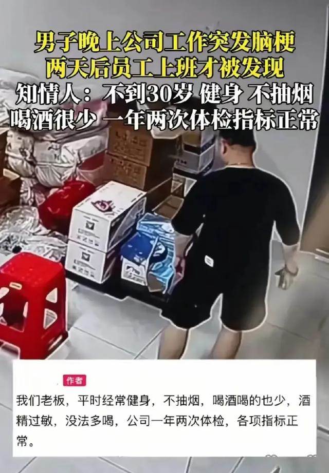 最近中國山東曝出一個新聞,一位年輕的小夥子才28歲就突發腦梗,因為發病時人在公司裡,而且還是在星期五晚上,身邊一個人都沒有,當大家周一上班時發現時,人已經就不在了。