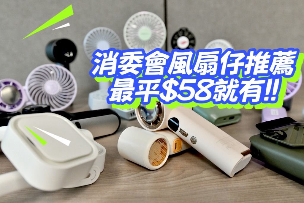 【消委會風扇仔/手提風扇/掛頸風扇】消委會委託獨立實驗所,測試18款可攜式充電風,當中大致分為16款「手提式」,以及2款頸環式風扇,售價由$58至$339不等。消委會發現,18個樣本裡面有4款送風量較高,2款樣本充滿電後在最高風速檔可持續使用逾3小時。整體而言,有6個樣本獲評較高的4星半總評,其中涵蓋售價最高及最低($339及$58)樣本。